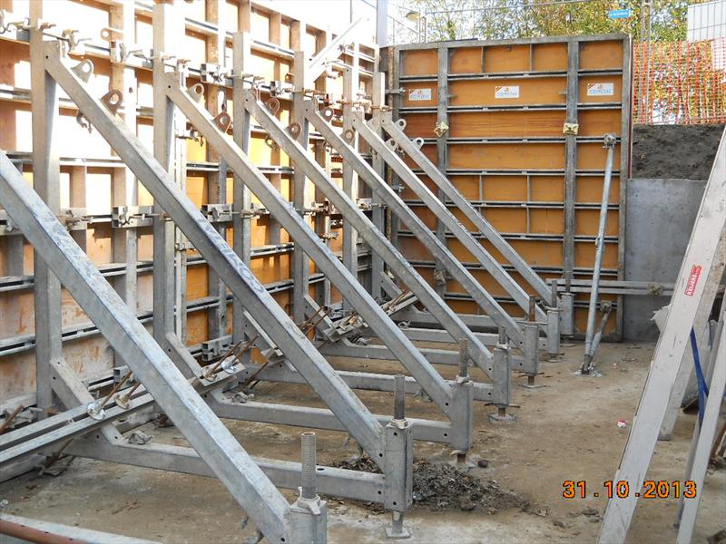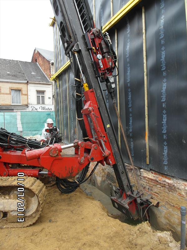 De funderingen van de aanpalende bebouwing werd eerst verstevigd d.m.v. micropalen. Daarna werd de bestaande bebouwing onderschoeid. De onderschoeingen werden op - 2.00 m verankerd met grondankers samen met de berlinerwanden.